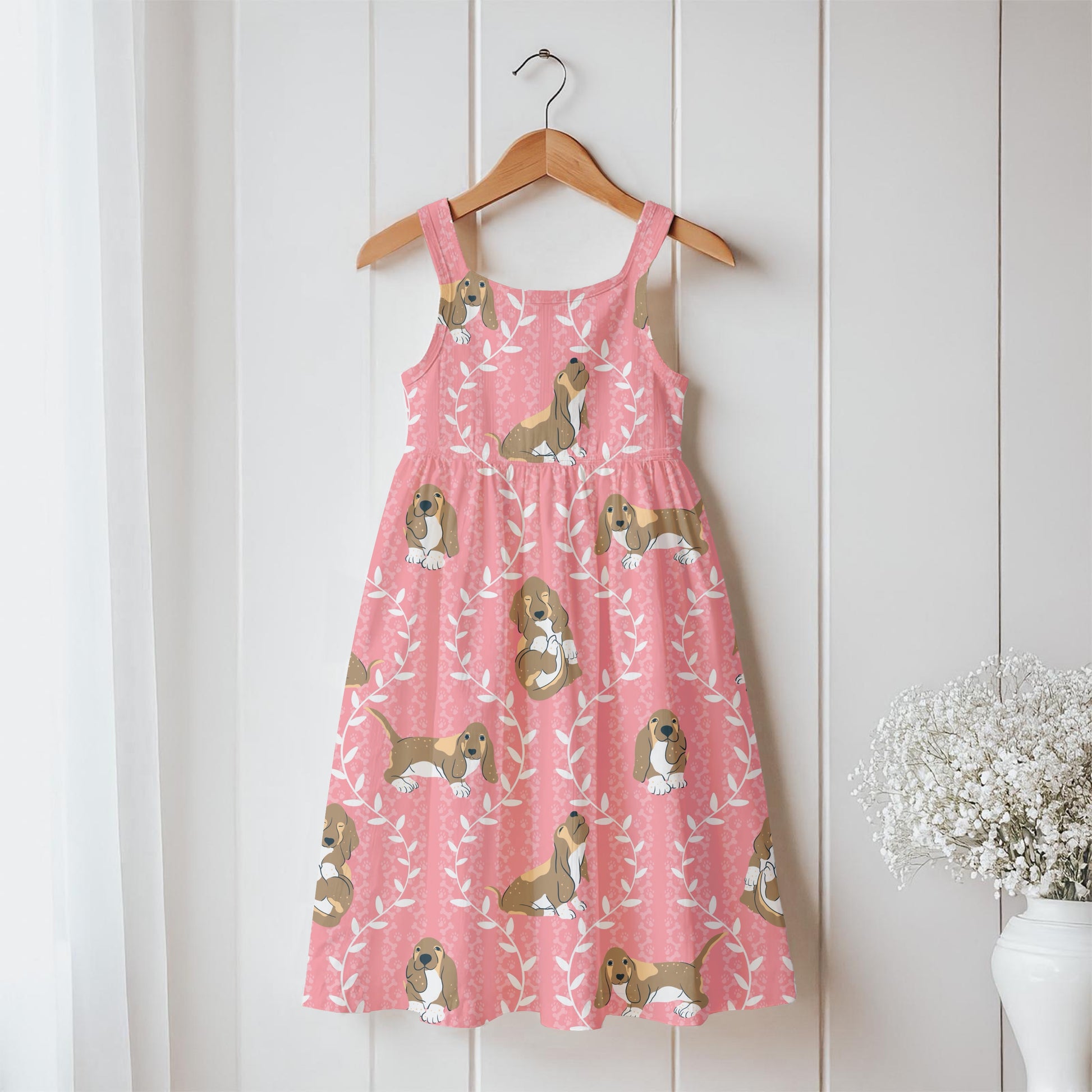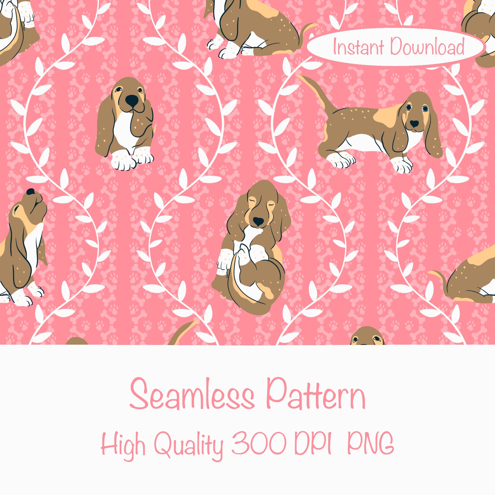 Basset Hound & Botanical Vines Seamless Pattern Pink | Cute Dog Pattern | 12x12” PNG Digital Download