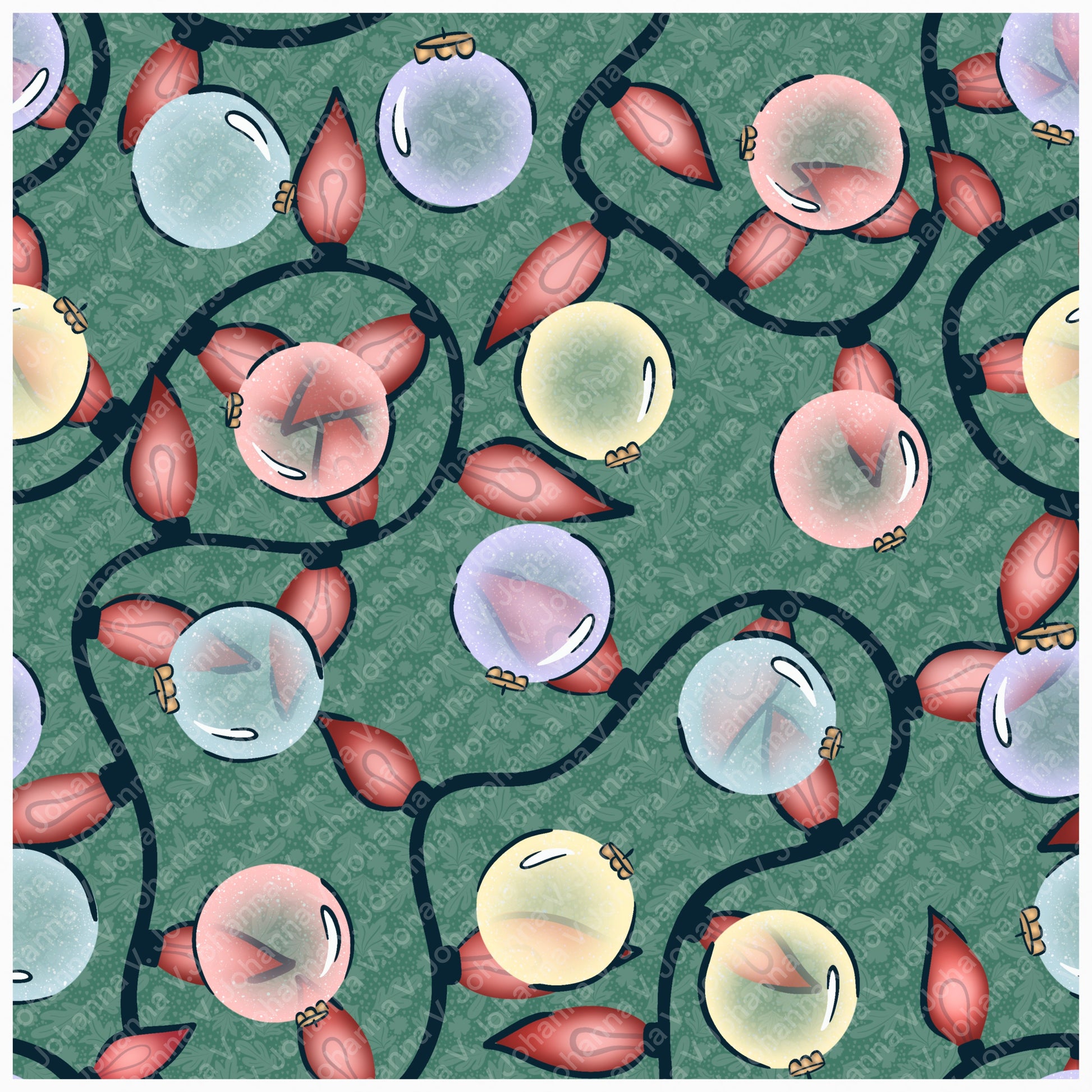 Christmas Basset Hound Seamless Pattern Bundle Blue Green | Ornaments, Lights, Gifts & Candy Canes | 12x12” PNGs | Digital Download