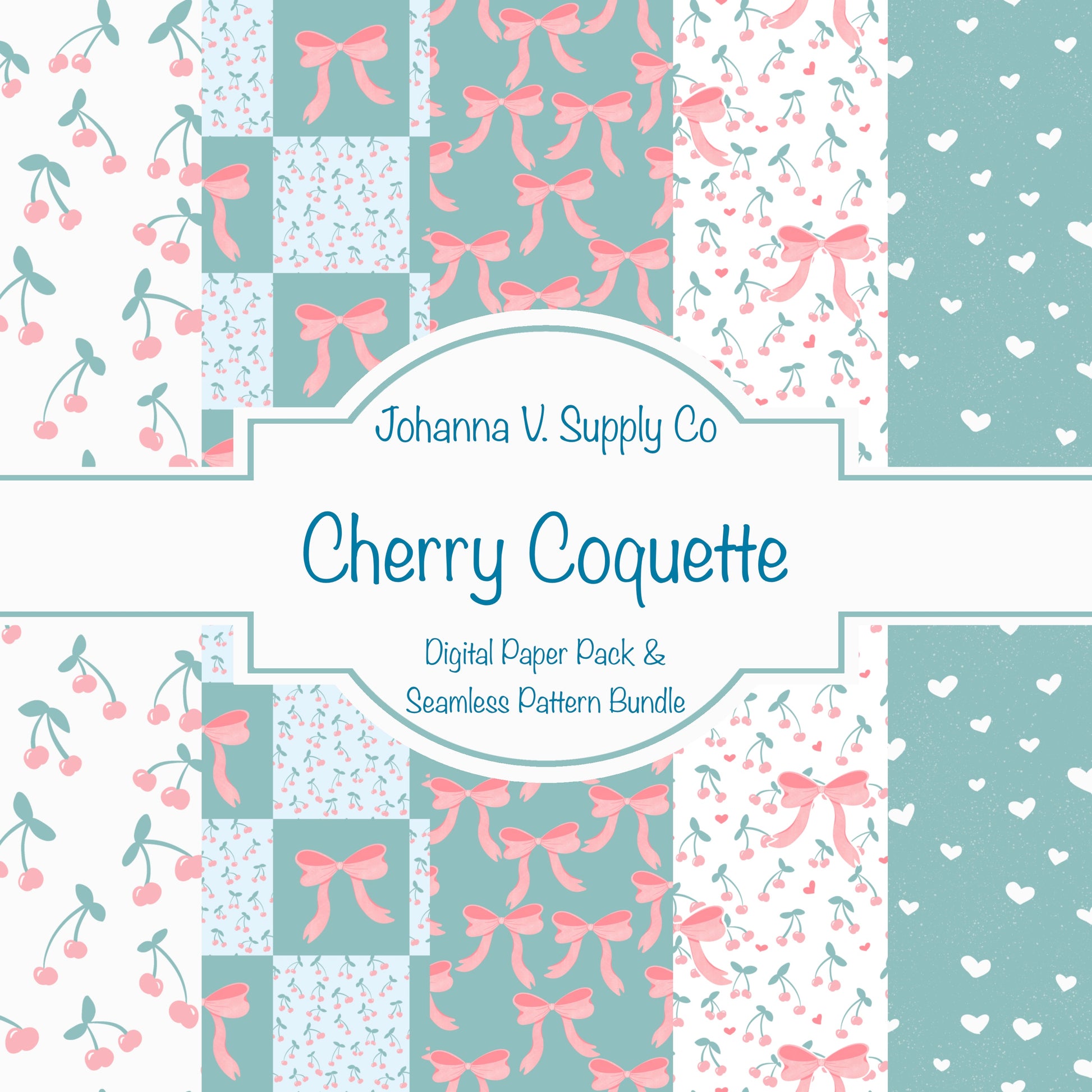 Coquette Digital Paper Pack & Seamless Pattern Bundle | Cherries, Bows & Hearts