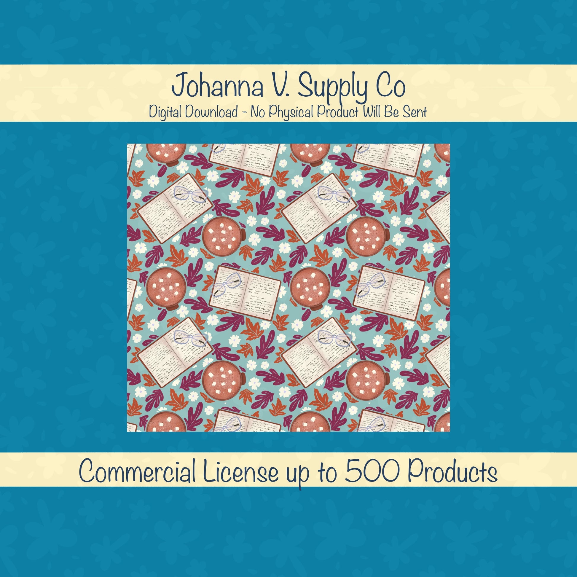 Cozy Fall 20 oz Tumbler Wrap Blue β Books, Hot Cocoa & Fall Florals PNG | Digital 9.25β x 8.20β