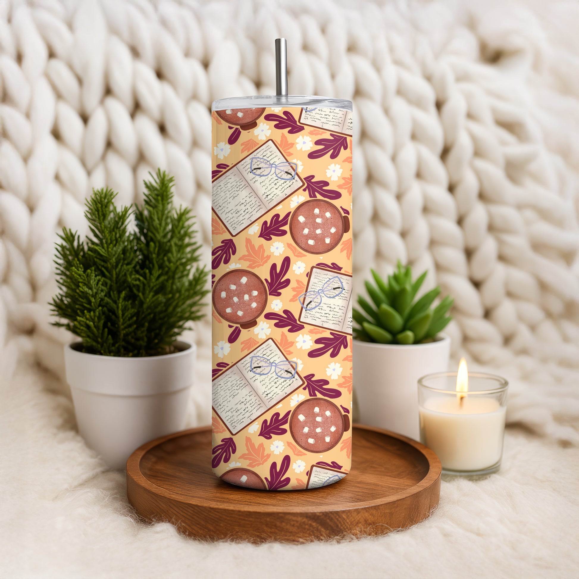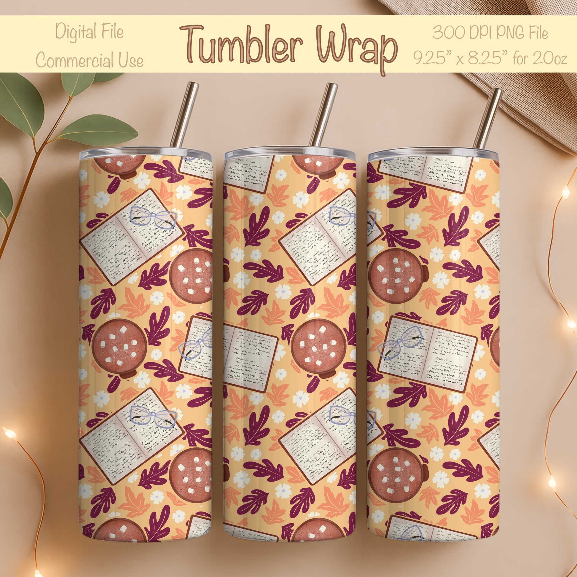 ππβ Celebrate the cozy magic of autumn with this Cozy Fall 20 oz Tumbler Wrap featuring books, steaming mugs of hot cocoa, and dreamy fall florals. Perfect for book lovers, autumn enthusiasts, and anyone who canβt resist the charm of a crisp fall day, this design will wrap your tumbler in seasonal comfort and style.