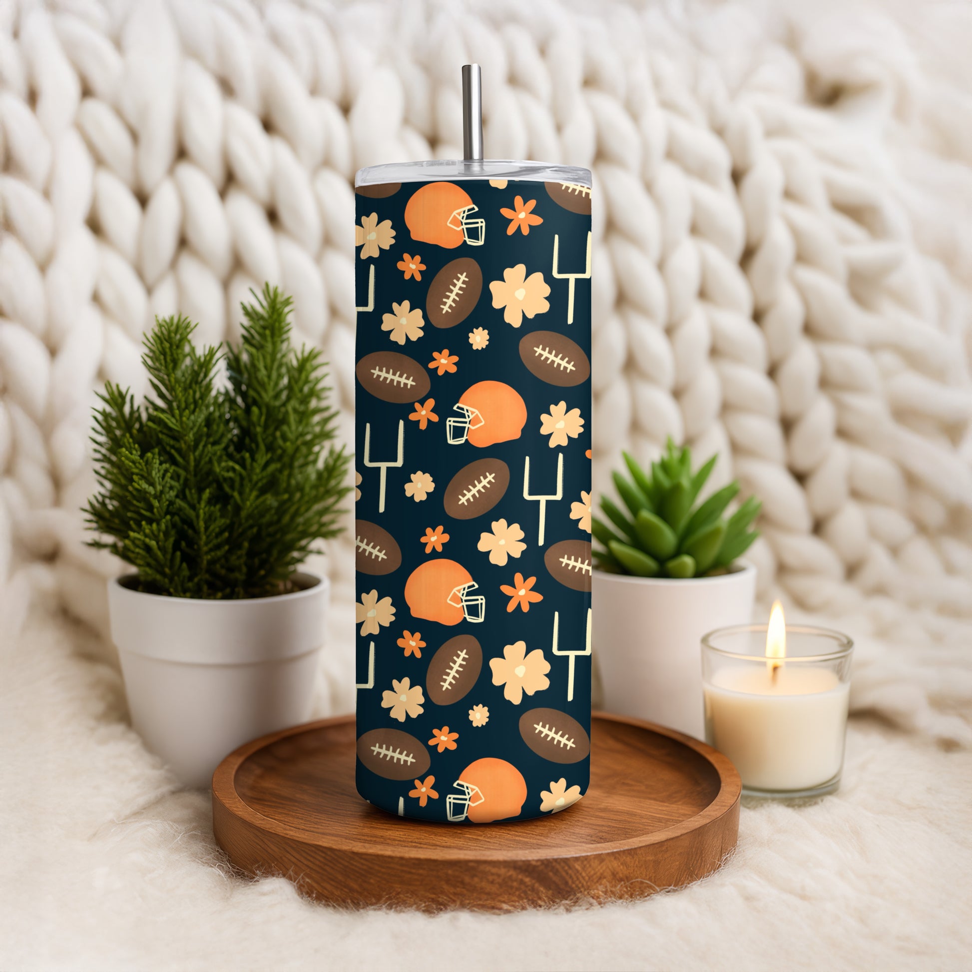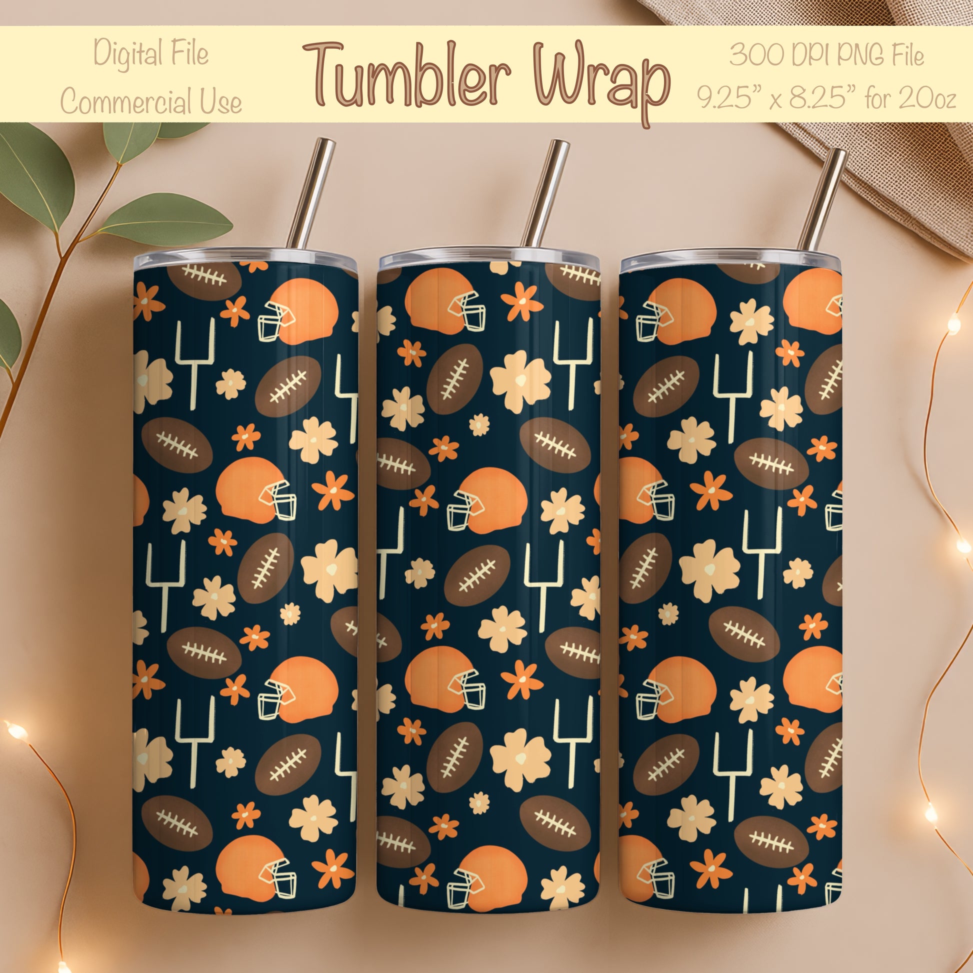 Cute Football Tumbler Wrap PNG | 20oz Skinny Cup Design for Game Day