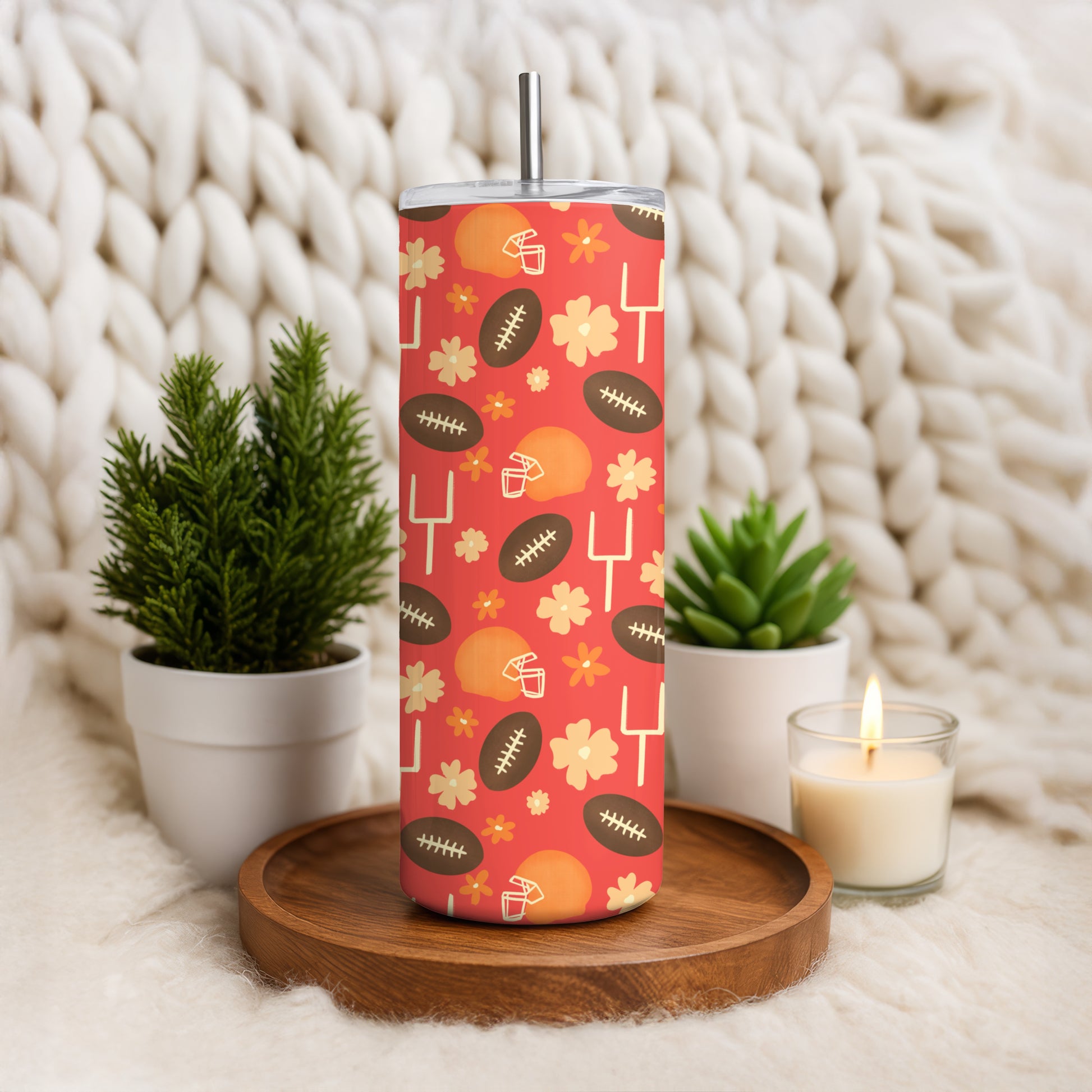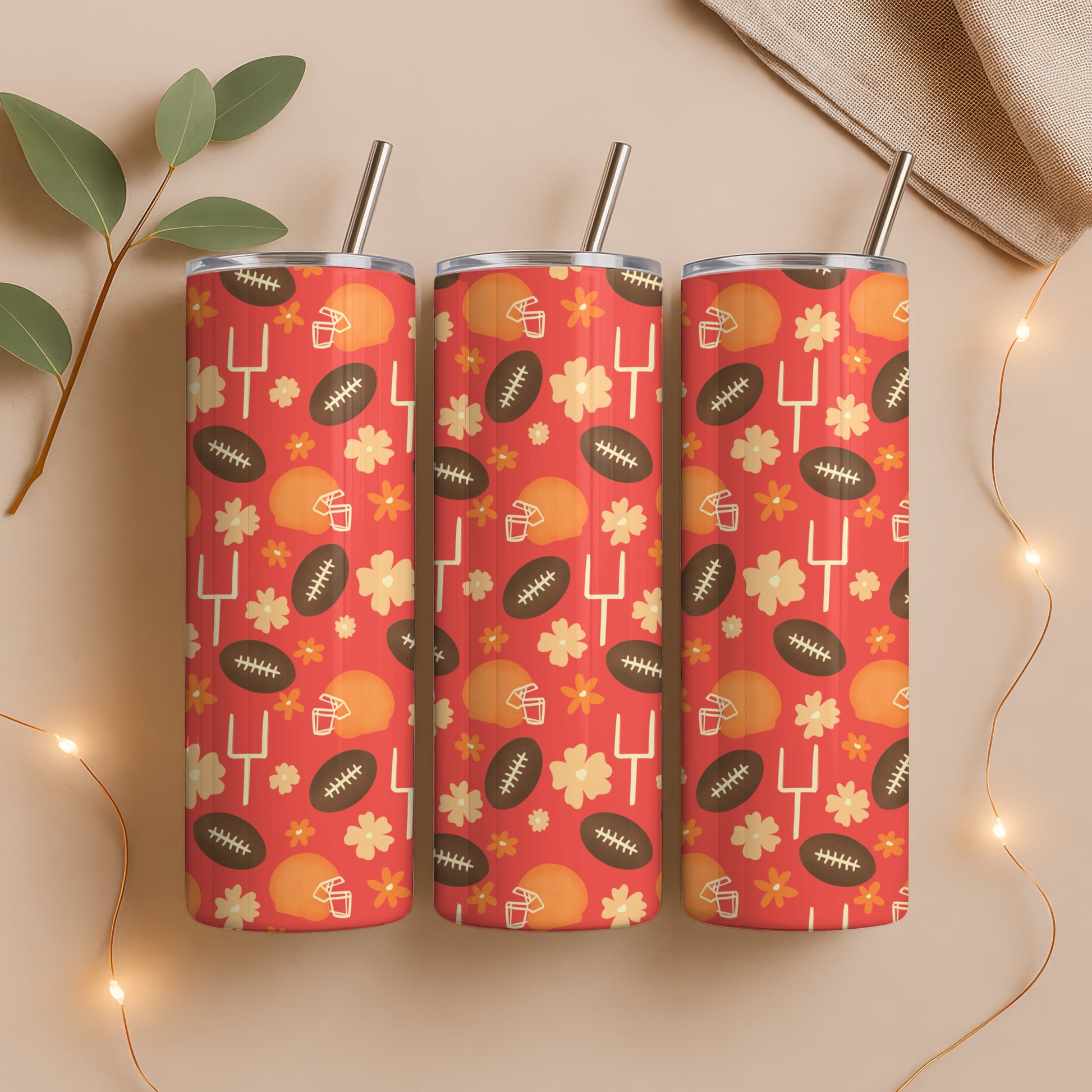 Cute Football Tumbler Wrap PNG | 20oz Skinny Cup Design for Game Day Red