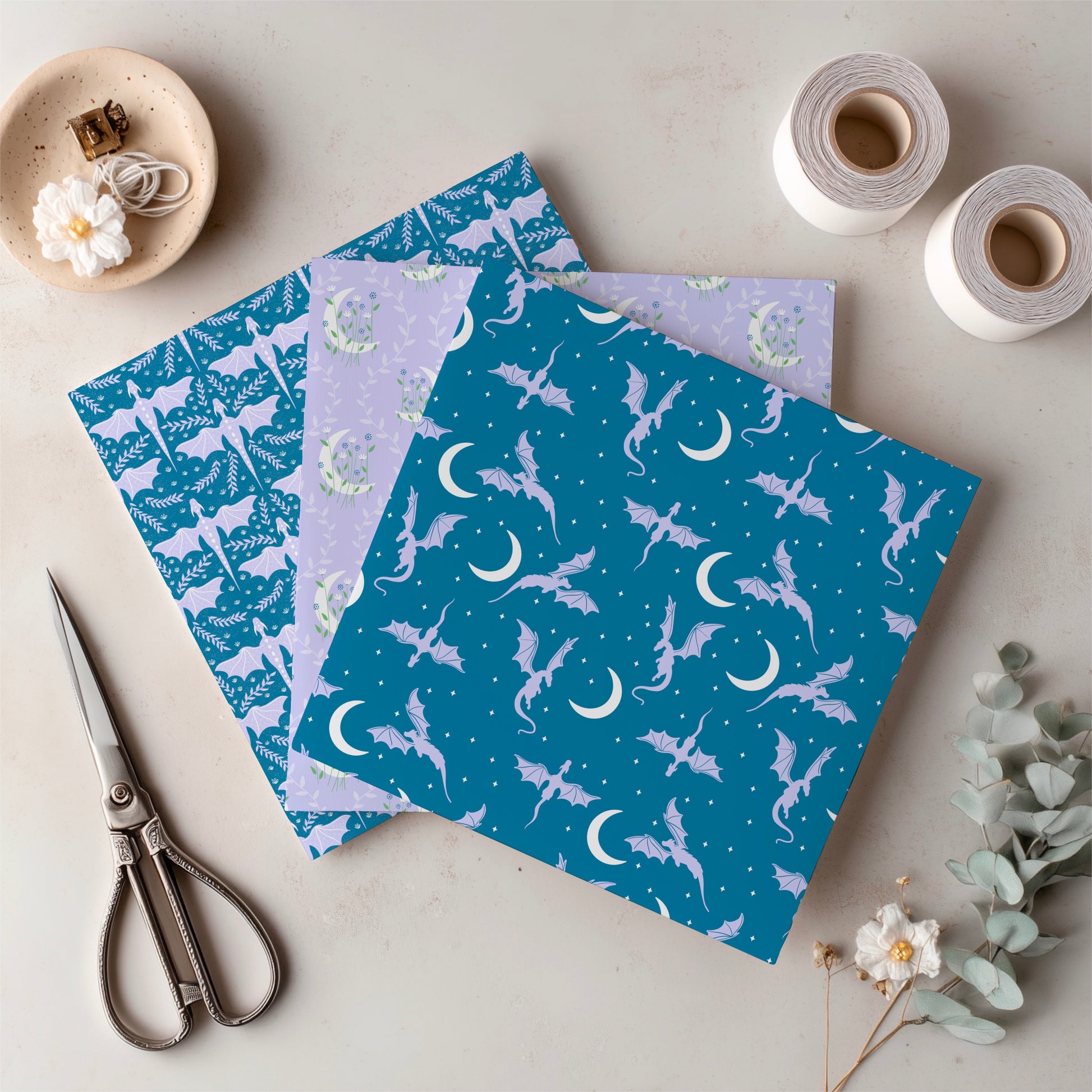 Bring a touch of fantasy magic to your next creative project with this dragons, moons, and botanicals digital paper pack 🐉🌙🌿✨. Featuring a dreamy mix of mystical dragons, celestial moons, and lush botanicals, these seamless backgrounds are perfect for scrapbooking, journaling, card making, digital projects, and more. With their enchanting detail and whimsical charm, these papers are designed to spark inspiration and elevate every creation.