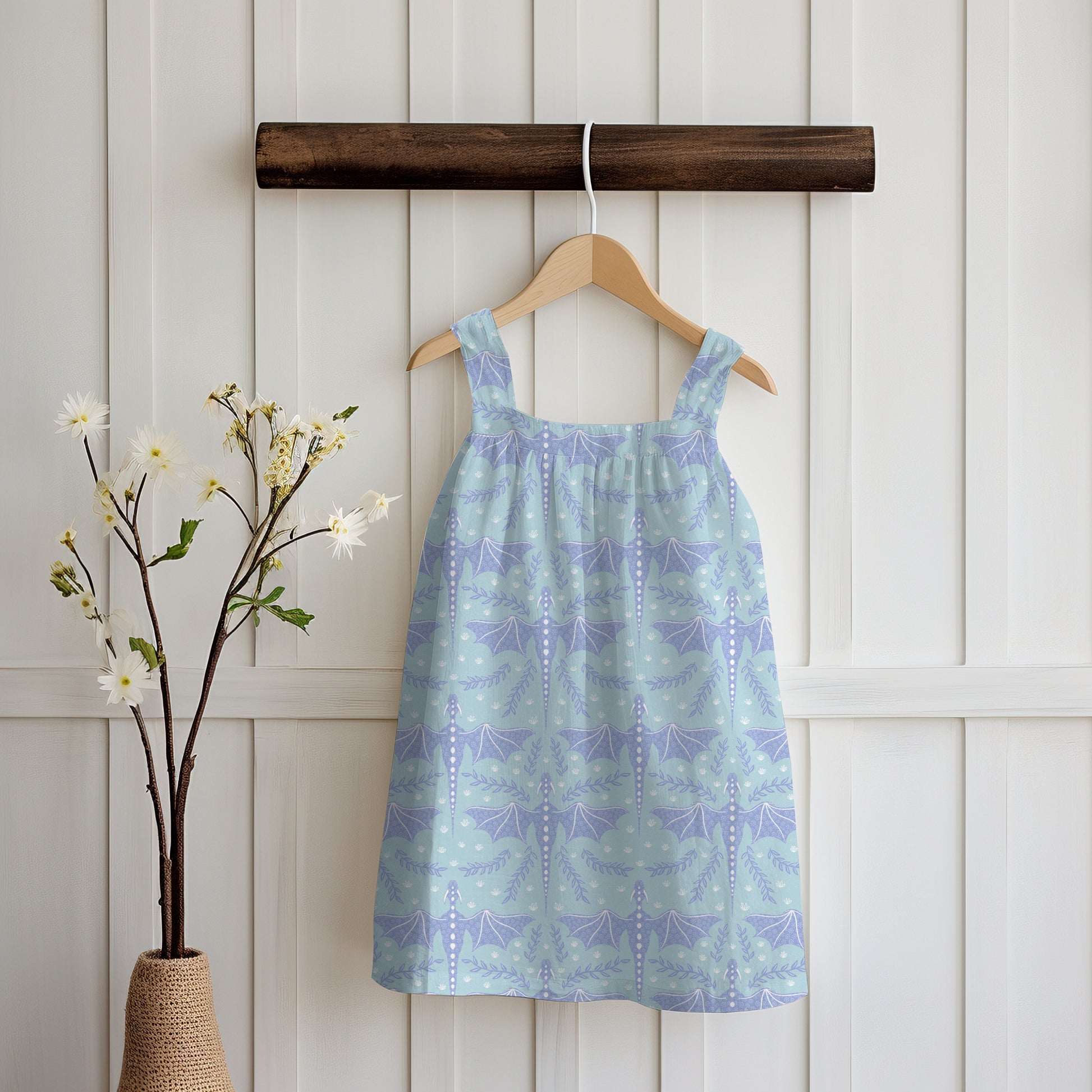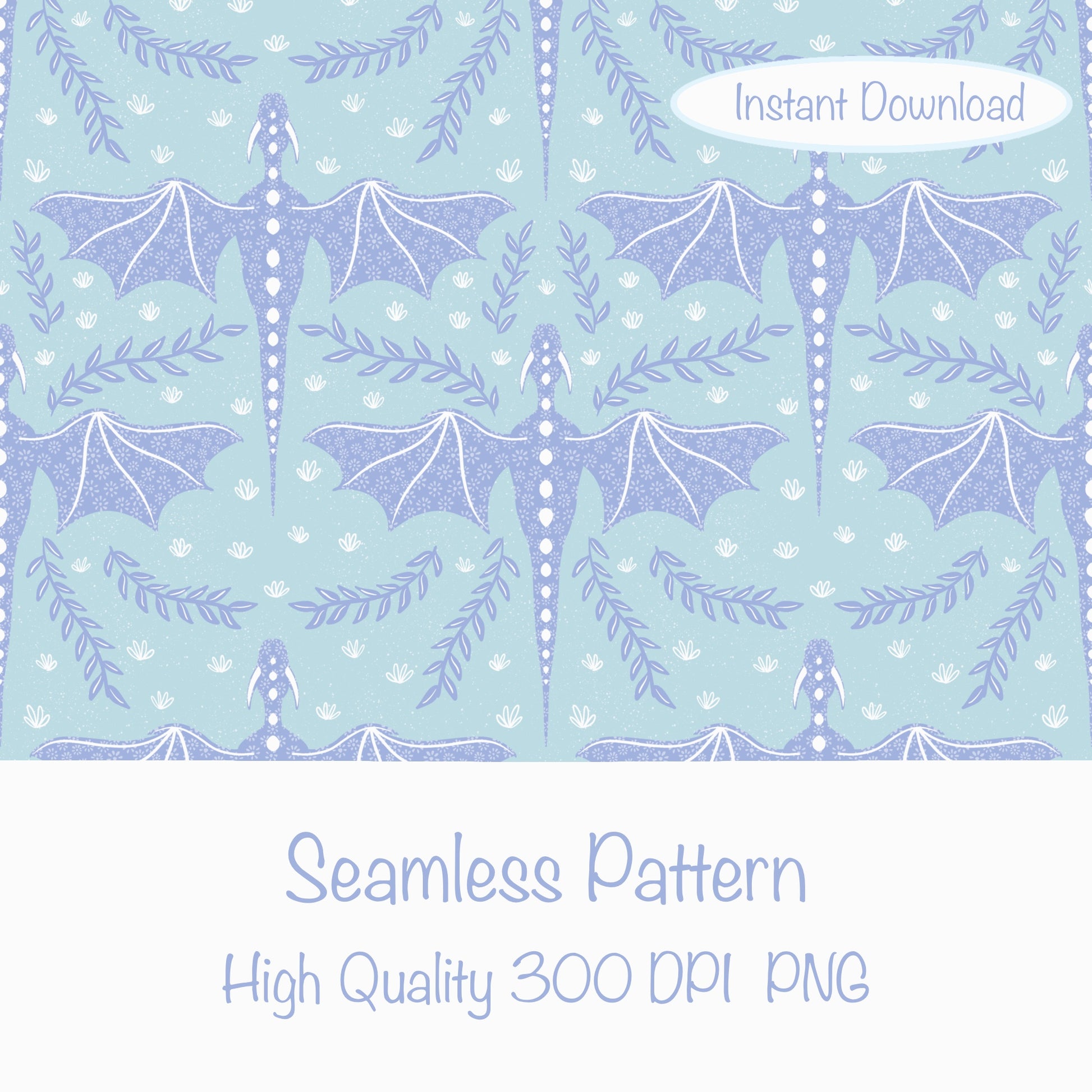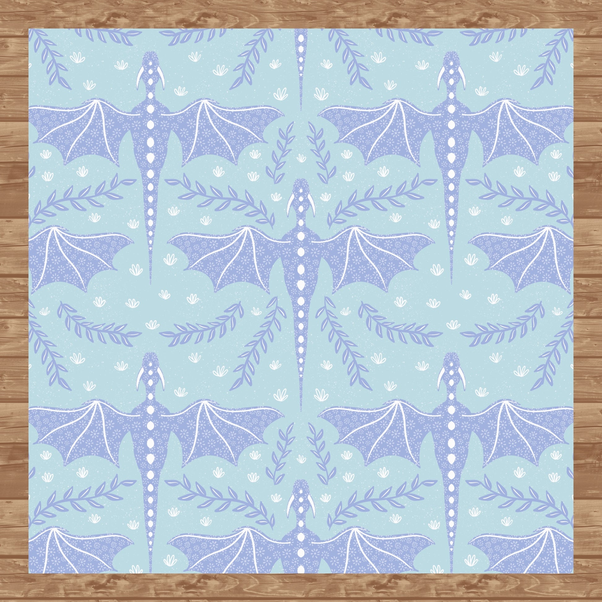 Dreamy Fantasy Dragon & Botanical Seamless Pattern Light Blue | Digital 12x12 PNG