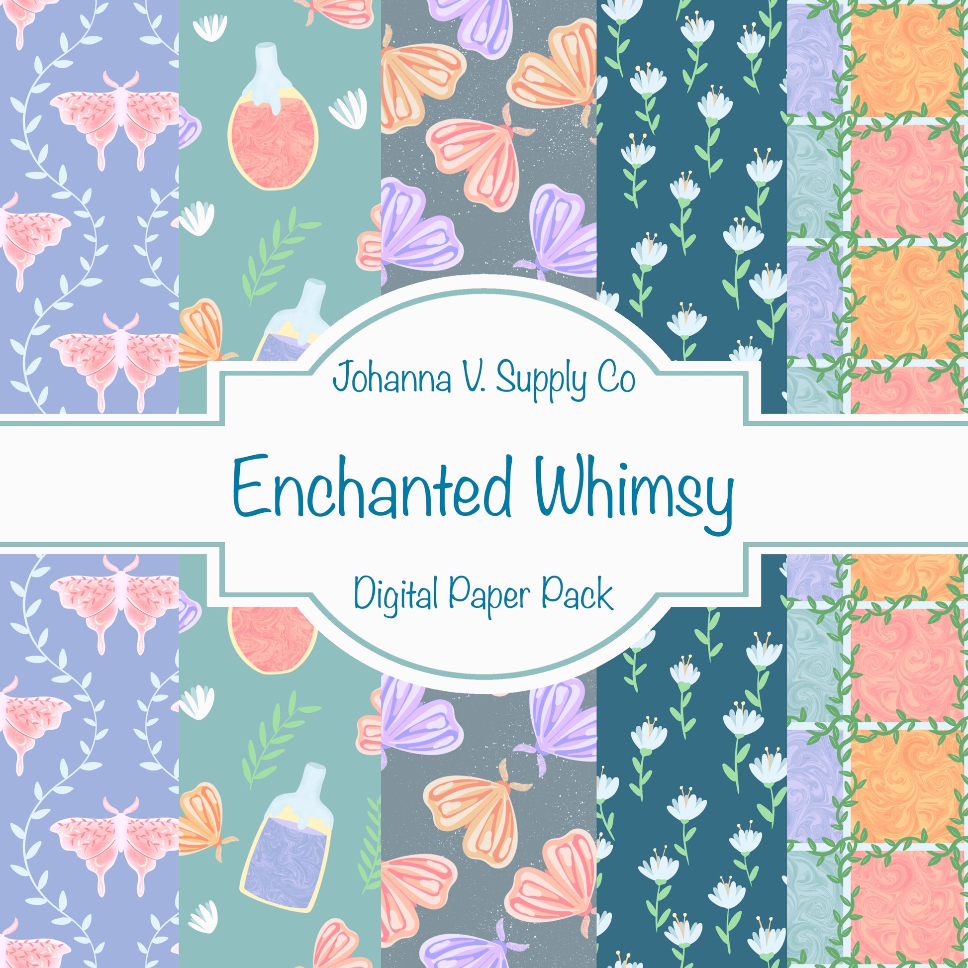 Enchanted Whimsy Digital Paper Pack | Moths, Potions & Botanicals | Magical Scrapbook Backgrounds