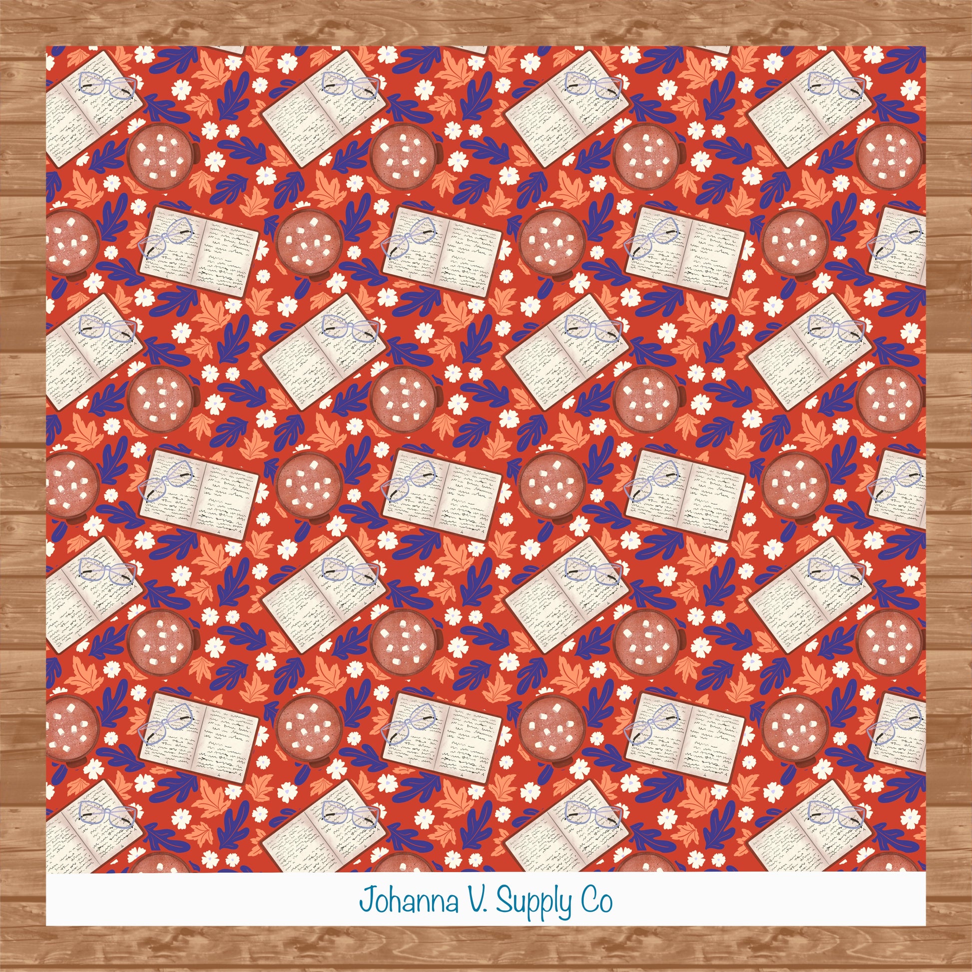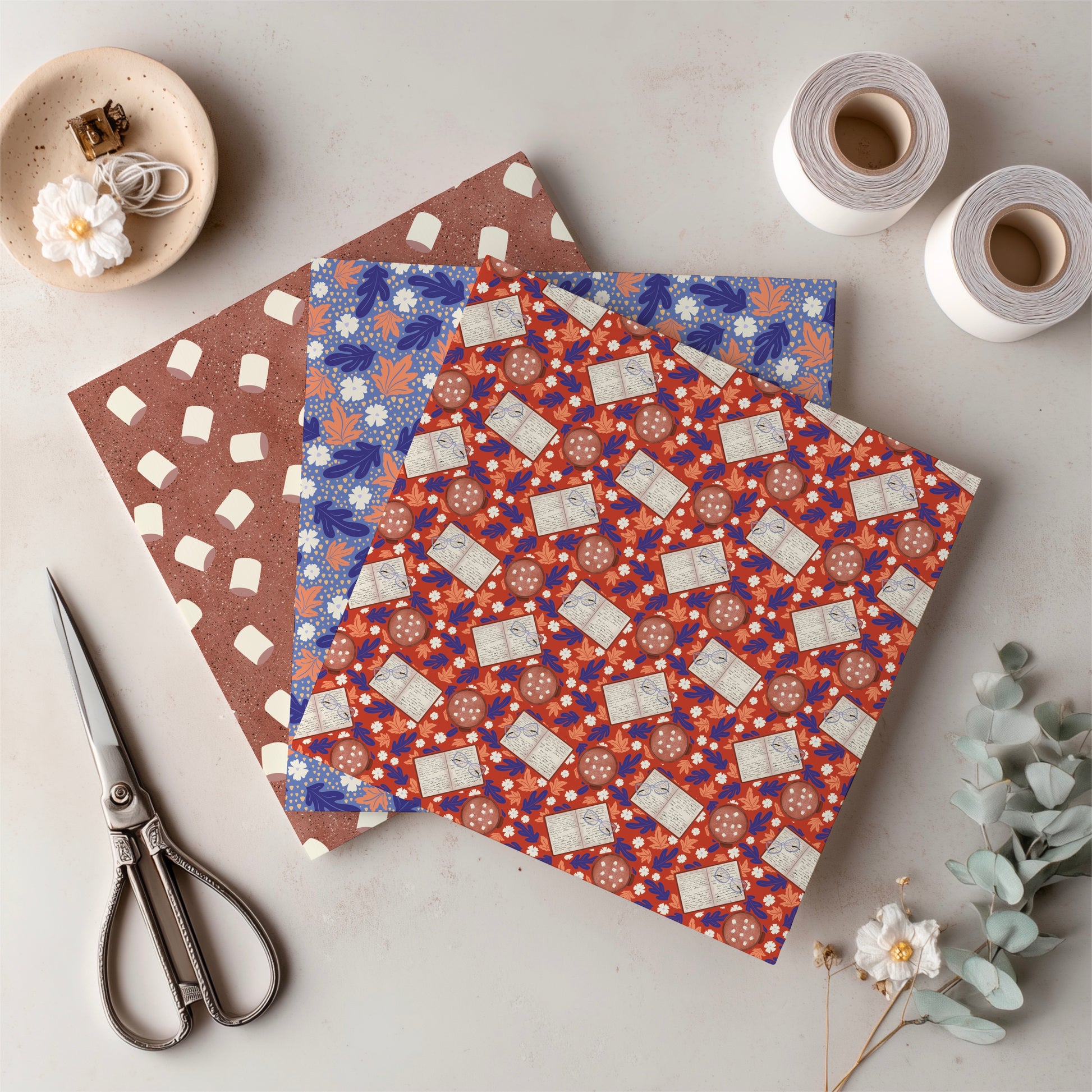 Fall Digital Paper Pack | Hot Cocoa, Books, Plaid & Botanicals | Cozy Autumn Scrapbook Backgrounds