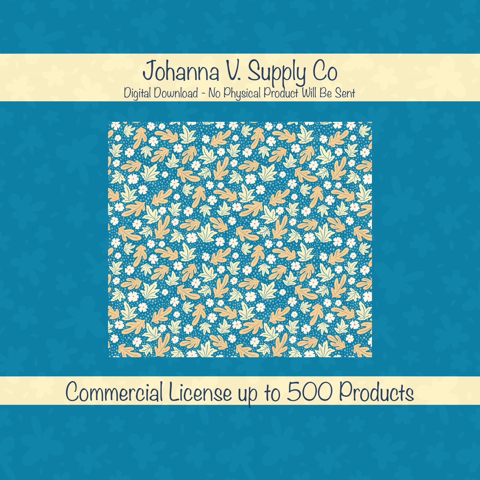 Fall Floral 20 oz Tumbler Wrap Blue β Cozy Autumn Flowers Digital PNG 9.25β x 8.20β