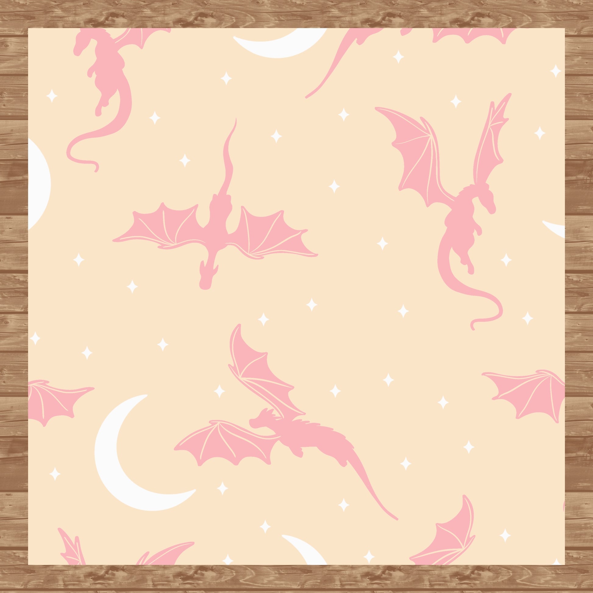 Transform your projects into a fantasy dreamscape with this dragon, moon, and star seamless pattern—the perfect choice for creatives and small business owners who love a touch of magic ✨💜.