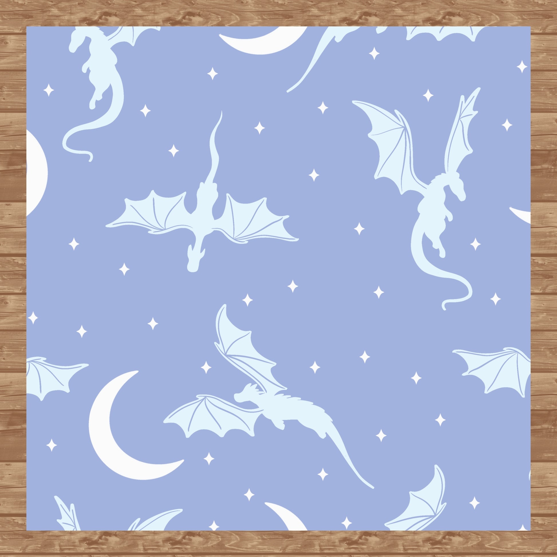 Transform your projects into a fantasy dreamscape with this dragon, moon, and star seamless pattern—the perfect choice for creatives and small business owners who love a touch of magic ✨💜.