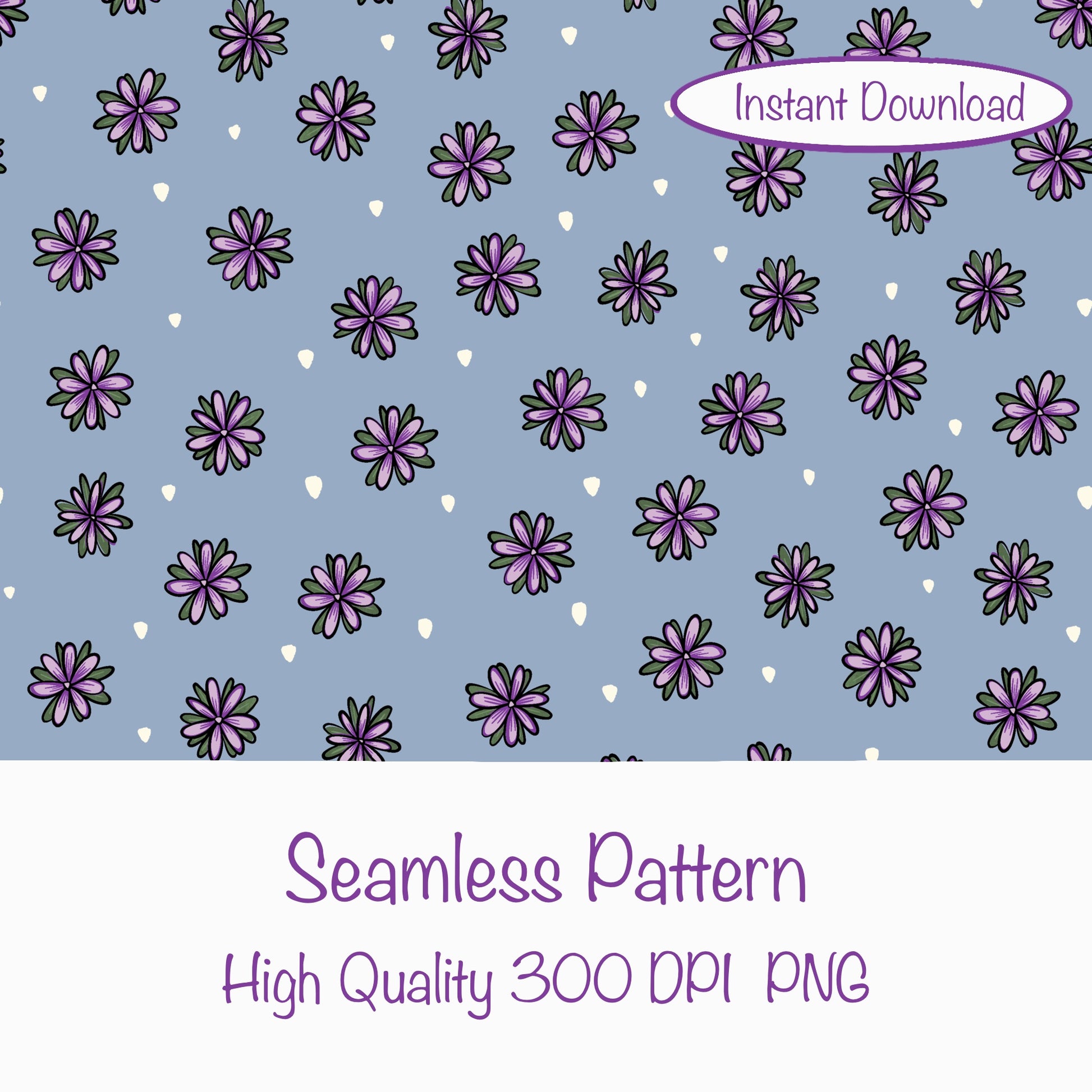Mystic Witchy Floral Seamless Pattern Blue | Doodle Flower Digital Design | 12x12โ PNG 300 DPI | Commercial Use Pattern