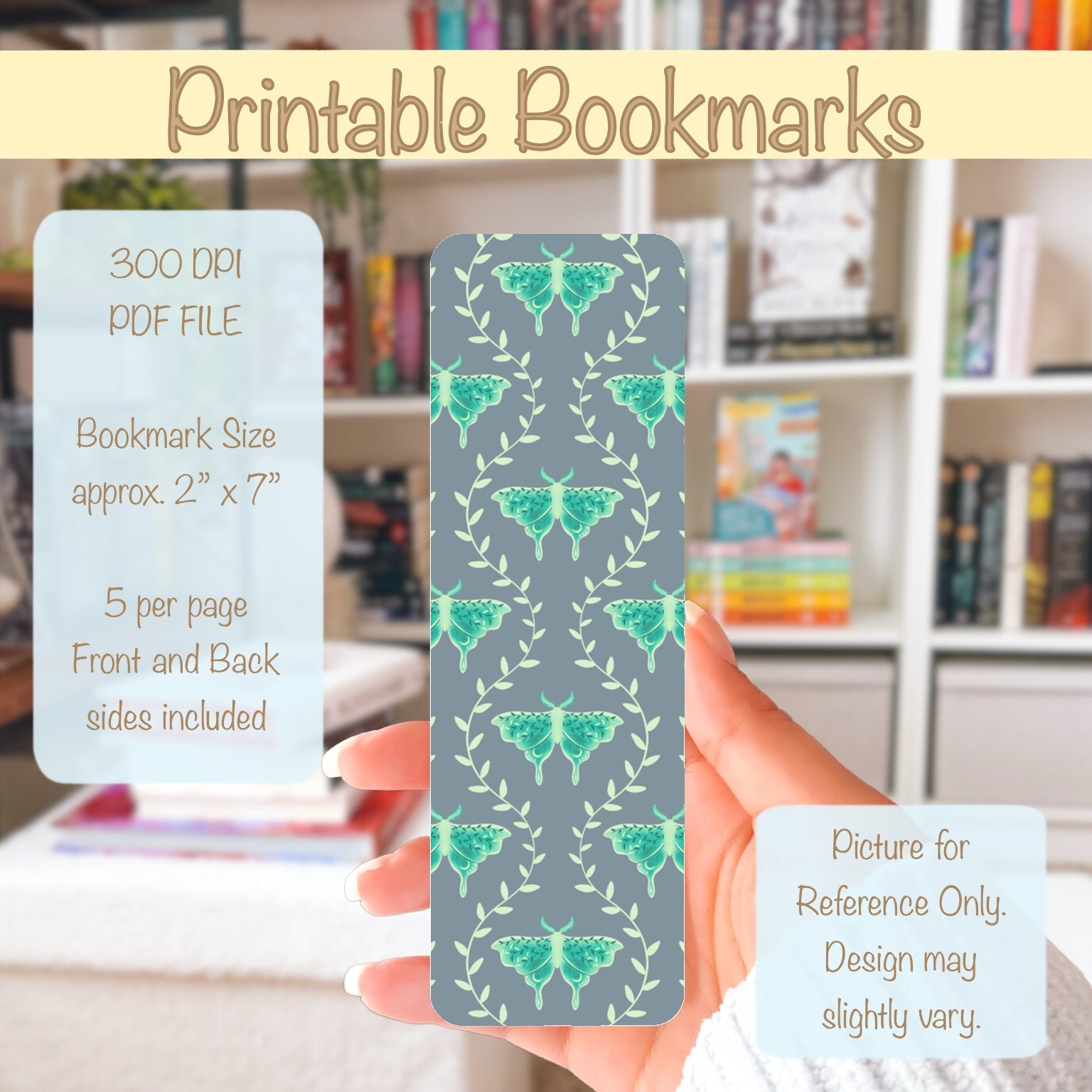 Whimsical Moth Printable Bookmark Grey β Dreamy Digital Download | 2 PDF Files, 2βx7β at 300 DPI | Commercial Use