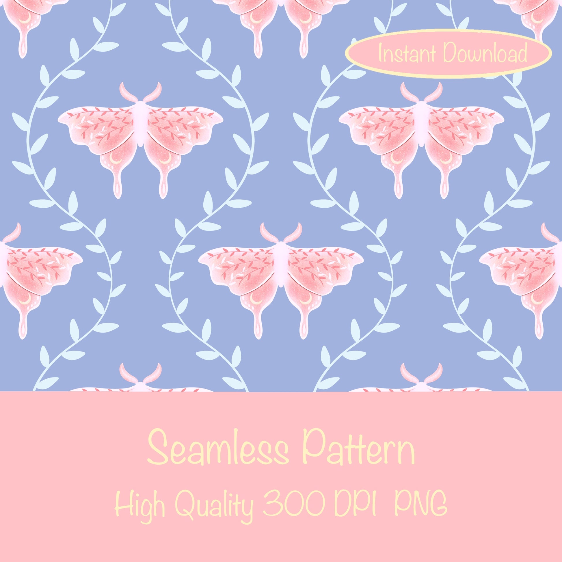 Whimsical Moth Seamless Pattern Digital File – Dreamy 12x12” PNG, 300 DPI, Commercial Use