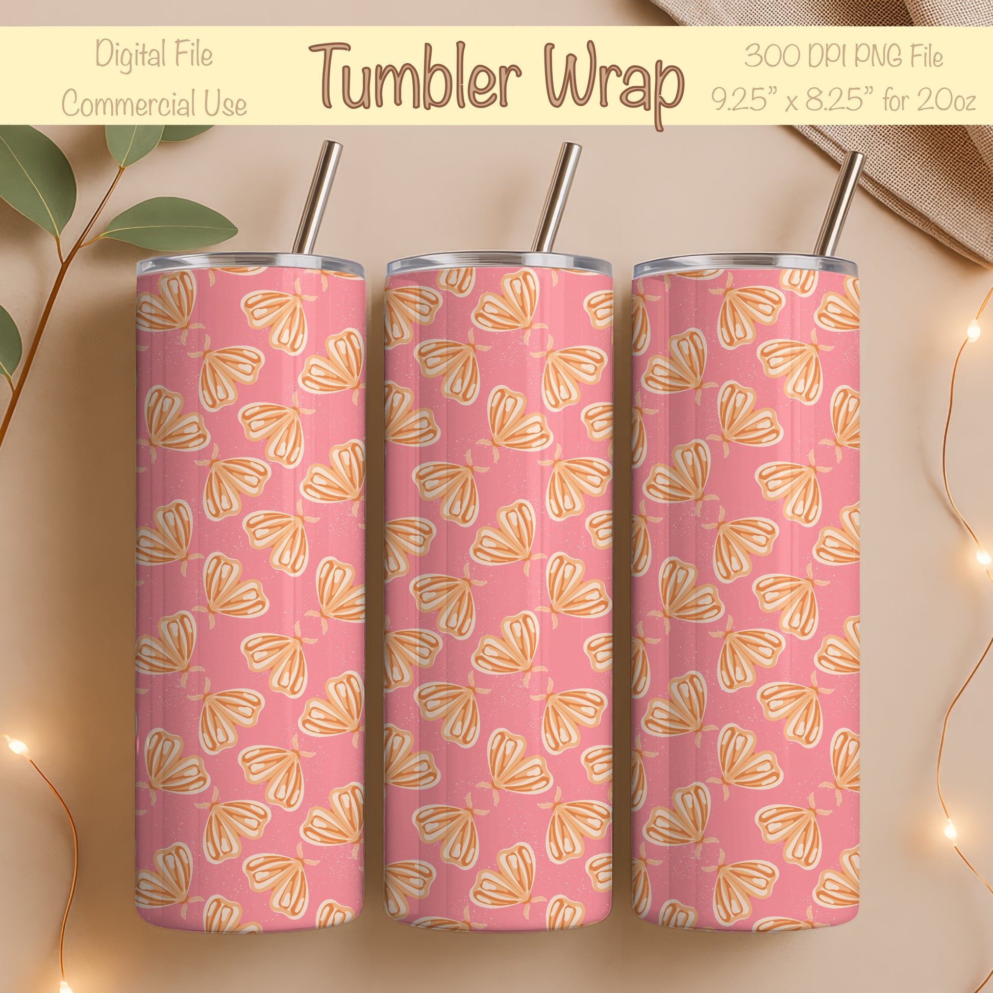 Whimsical Moths Tumbler Wrap Orange– Digital 9.25” x 8.20” PNG File