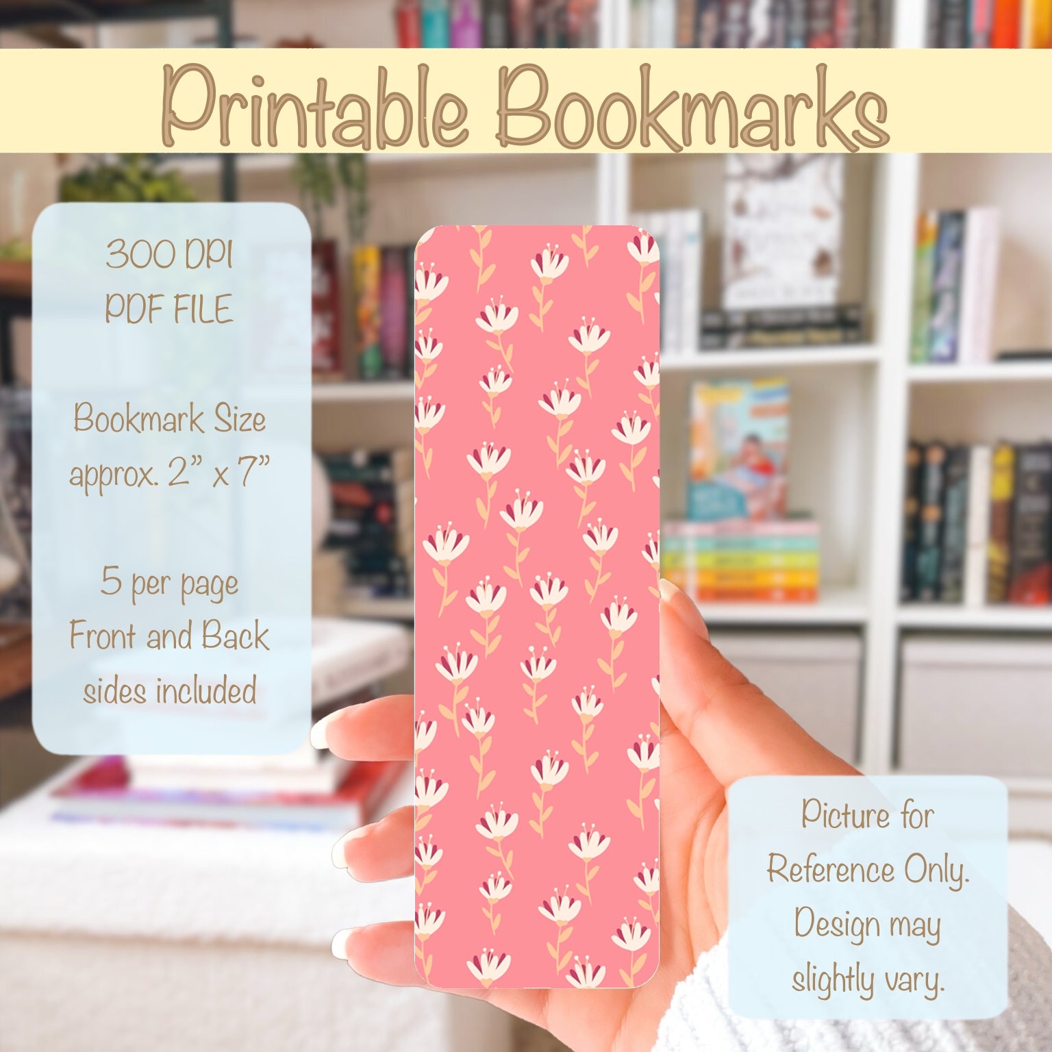 Whimsical Printable Flower Bookmark Pink – Digital Download | 2 PDF Files, 2x7” at 300 DPI | Commercial Use