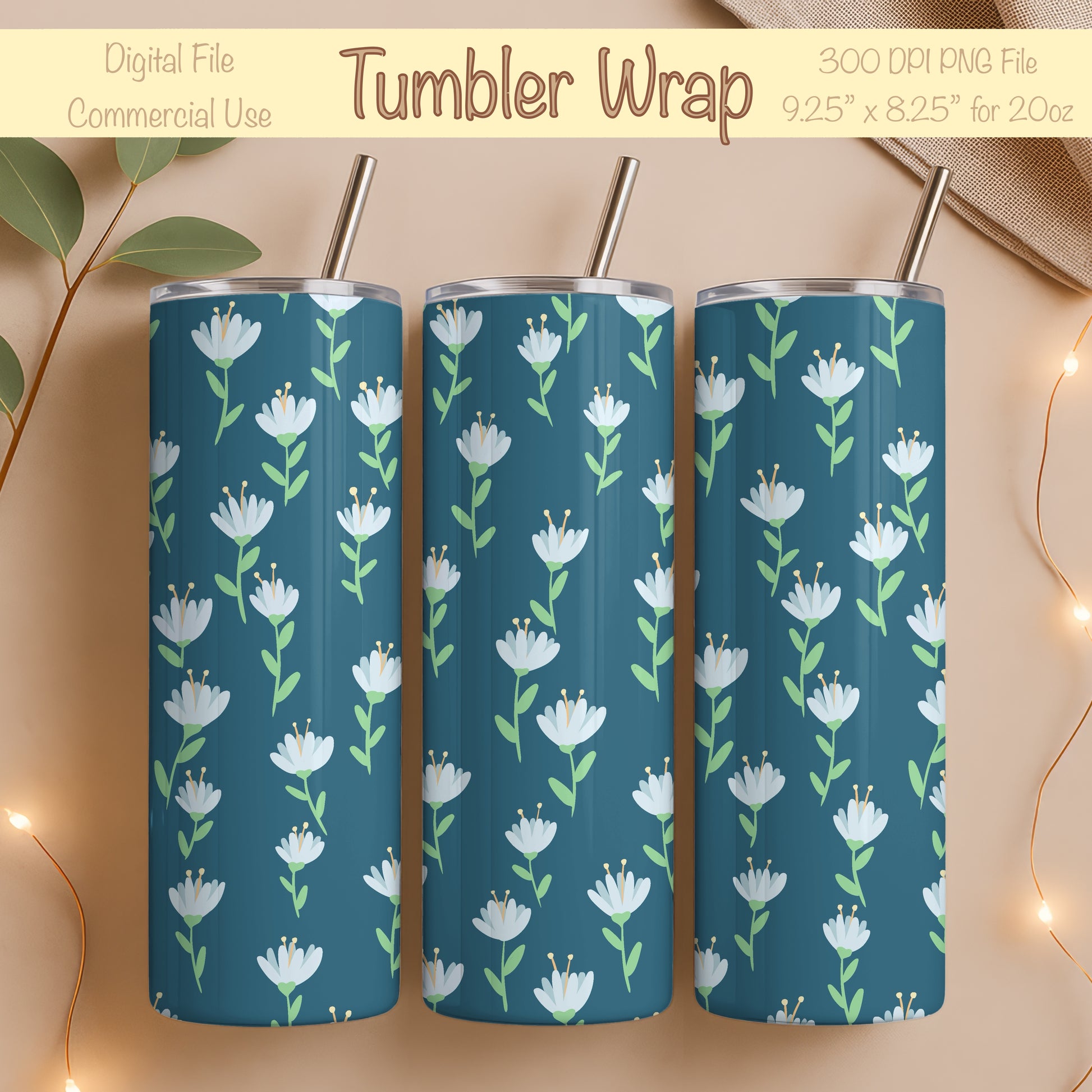 Whimsy Blooms Tumbler Wrap Blue β Digital Floral 9.25β x 8.20β PNG File