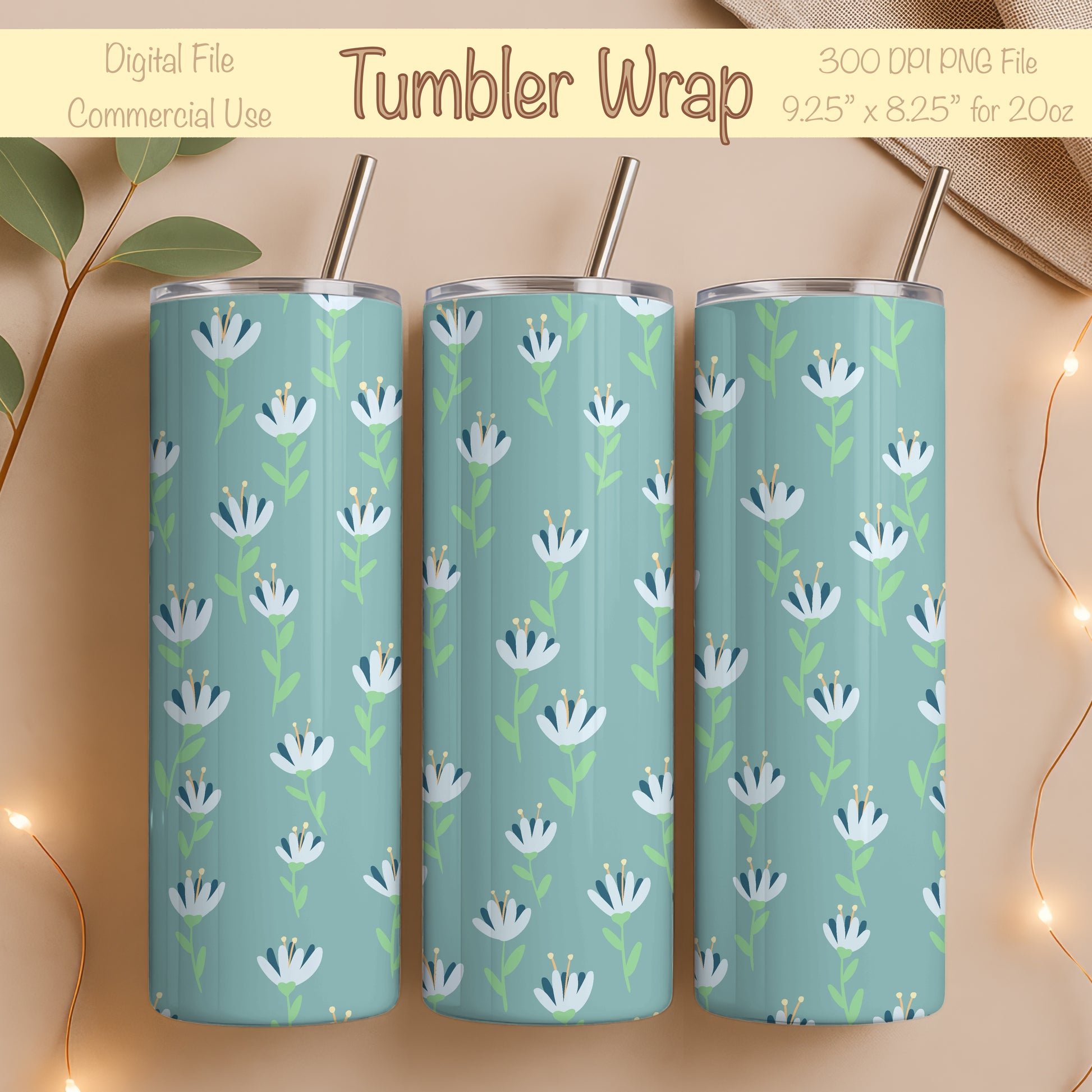 Whimsy Blooms Tumbler Wrap Green β Digital Floral 9.25β x 8.20β PNG File
